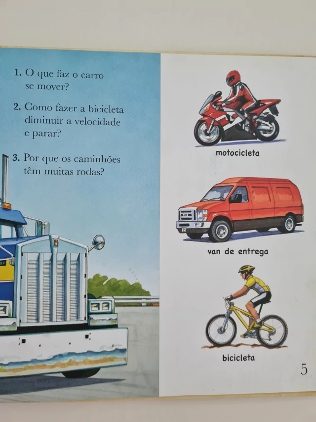 As grandes escavadeiras fazem barulho, os carros de corrida roncam e os aerobarcos atravessam as águas neste livro íncrivel. Encontre as respostas sobre trens, caminhões, aviões e outros veículos e descubra as suspresas atrás das abas.