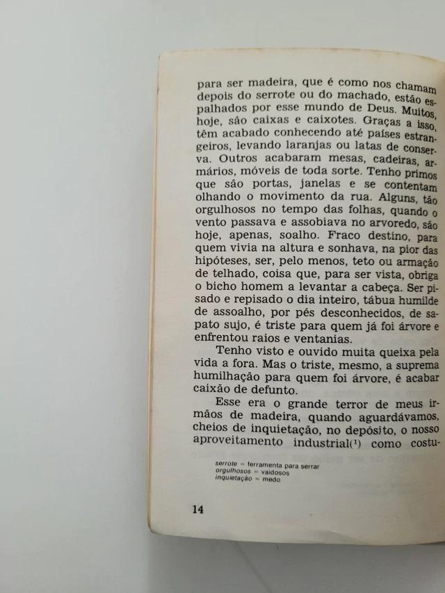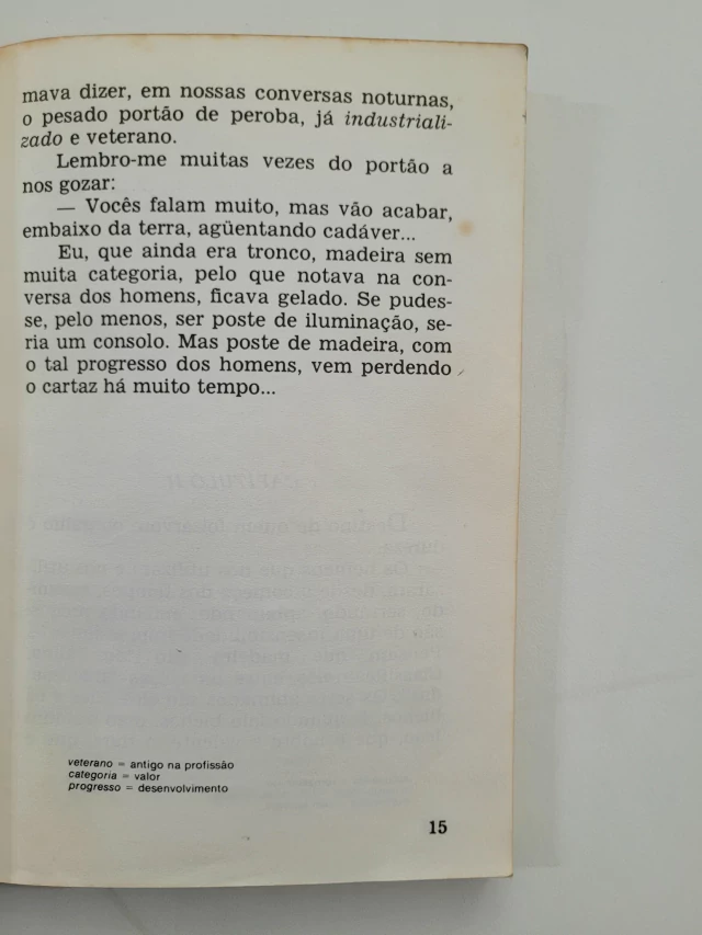 Como todos os outros, ele nascera madeira, a seiva da terra em utilidade transformada. Um simples cabo de vassoura, que exatamente por ser simples, sentia e ouvia, falava e não era ouvido senão por aqueles que lhe eram mais próximos e semelhantes. Pobre e sofrido cabo de vassoura, em "cavalo" transformado, e tão necessitado de afeto! Um cabo de vassoura um tanto gente... e quase sempre melhor que muita gente...