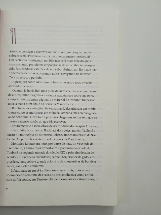 Um escritor viaja em busca de inspiração para sua próxima história. A única certeza que tem é a de que o livro deve falar de um autor que marcou sua infancia e abriu as portas de sua imaginação. Essa é uma grande missão, que o leva ás lembranças mais remotas da vida dele. Como lidar com uma narrativa que toca em algo tão pessoal? Inquieto, ele visita as duas fazendas onde Monteiro Lobato morou, e que serveiram de cenário e referencia para o Sítio do Picapau Amarelo. A incansável busca por uma inspiração acabará conduzindo o escritor para dentro dos livros de Lobato. Nessa viagem inesperada, ele interage com os personagens de Reinações de Narizinho, O Saci, O Picapau Amarelo, Viagem ao céu, A Chave do Tamanho, A reforma da natureza... E ainda esclarece um mistério que aterroriza a turma do Sítio: quem é o Menino da Bengala?