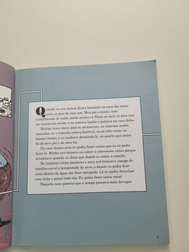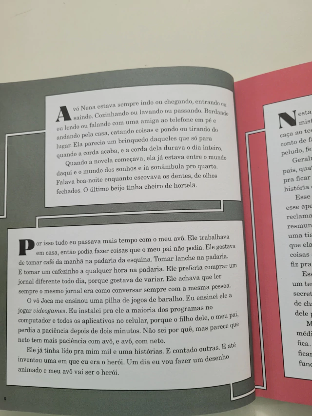 Quando menino, o narrador desta história passava dias e dias na casa dos avós Joca e Nena. O avô Joca gostava de contar histórias para o neto e de passar o tempo com ele. Um dia, o menino acha um álbum de fotografias bem curiosas da família. Ao investigar com seu avô o histórico de cada foto, o menino foi pego de calça não sabia que, por causa delas, descobriria um assunto mal resolvido entre seu avô e o bisavô, envolvendo o sumiço de um autorama um episódio que gerou muitos anos de uma mágoa silenciosa. Mas uma caça ao tesouro com seu bisavô em busca do autorama vai desfazer todo o nó emocional da família. E, nessa jornada, o menino ainda descobre por que as crianças só podiam usar calça curta. Esta história emocionante e um tanto cômica, ilustrada com maestria por Rafael Sica, resgata os laços de afetividade entre a família, lembrando ao leitor que sempre há tempo para a reconciliação.
