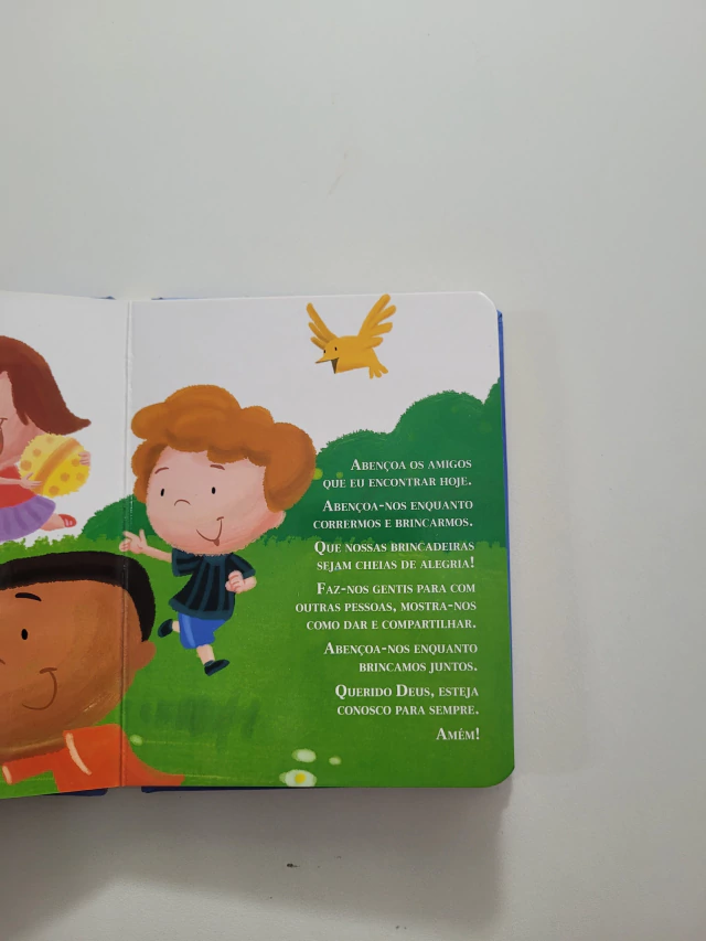 Deus tem prazer em ouvir a oração sincera de uma criança. É durante a infância que o coração está mais aberto ao seu amor. As orações simples e cativantes despertam na criança sentimentos de fé e confiança, gratidão e louvor e a descoberta do amor divino. Este belo livrinho, delicadamente ilustrado, encoraja a criança a buscar seus primeiros diálogos com Deus e aprofundar seus laços orando em família.