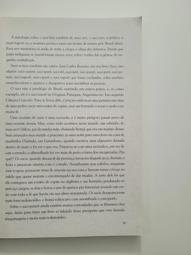 Nesta obra, diversas linguagens nos aproximam da cultura popular brasileira: a prosa, a poesia, as artes plásticas e a música. Em primeiro lugar, o contato se dá com uma narrativa em prosa, na qual o autor mistura lendas antigas a "causos" mais recentes. Logo a seguir, a mesma história ganha novos sabores ao ser recontada em versos bem-humorados, claros e ritmados, à maneira dos repentistas e aboiadeiros da nossa tradição. Para cada lenda ou personagem, o autor escolhe uma forma poética distinta e esclarece o leitor tecendo comentários sobre a organização formal que a caracteriza. Acompanhando o poema, o autor introduz a partitura com a melodia a ele correspondente, para que possamos também aprender a cantá-lo. Por fim, as belas xilogravuras de Valdeck de Garanhuns e de outros artistas ilustram o livro e revelam aspectos das personagens de quem nos tornamos íntimos.