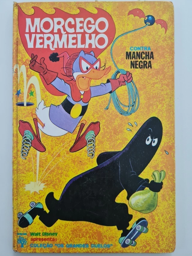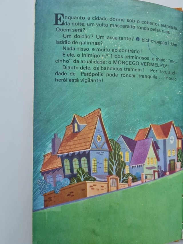 Atentendo a um pedido de socorro, o valente Morcego Vermelho parte em auxílio da vítima. E para sua surpresa, o assaltante era nada mais nada menos que o terrível Mancha Negra! Após sensacional perseguição, o Mancha consegue graças a um... CHAPÉU VOADOR!!!