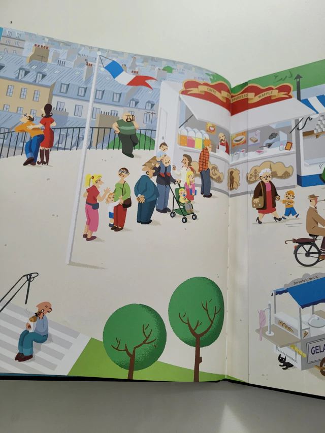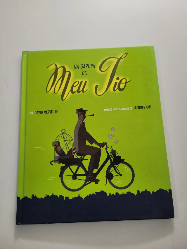 Na garupa do meu tio', do ilustrador David Merveille, traz uma sequência de cenas que convida o leitor a apreciar uma aventura do senhor Hulot pela cidade de Paris. Como num livro cinematográfico, cada dupla tem um folder que abre e revela uma surpresa. Elementos retirados dos filmes de Tati estão espalhados pelas ilustrações de Merveille - a casa de Hulot e a fonte em forma de peixe de 'Meu tio', ou a rotatória em 'Play time'. Nesta edição, o ilustrador húngaro Istvan Banyai assina um poema na quarta capa, revelando alguns dos segredos deste livro.
