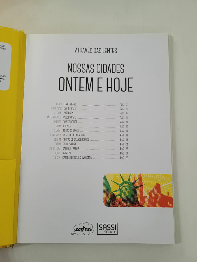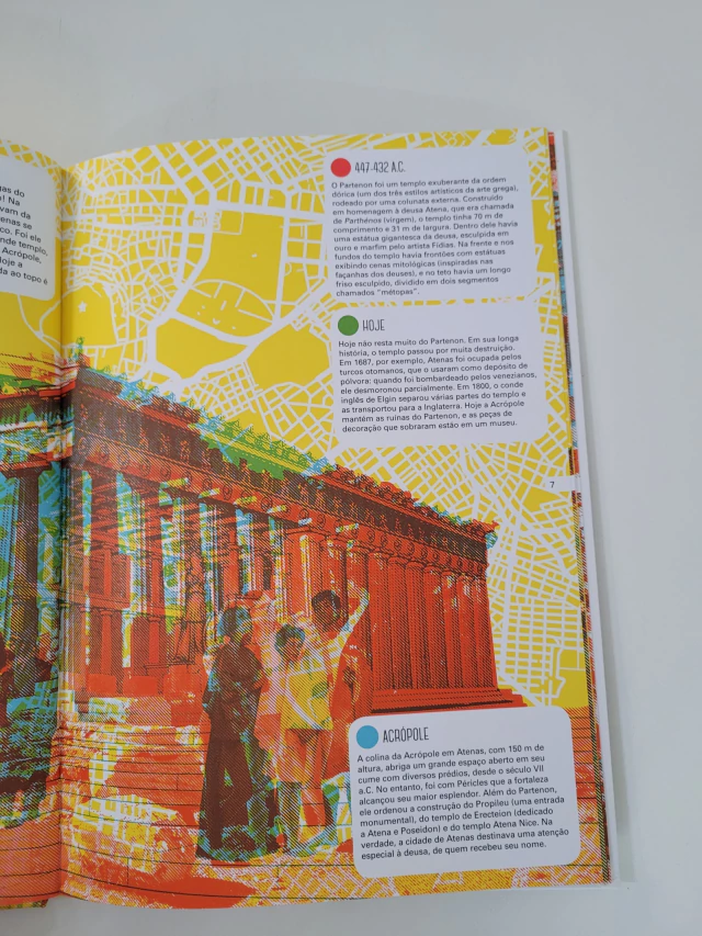 As grandes cidades são repletas de edificações e monumentos que se tornaram conhecidos em todo mundo. Roma tem o Coliseu; Paris, a Torre Eiffel; e basta uma olhada na Estátua da Liberdade para lembrar de Nova York. Mas como eram esses lugares antes da existência dessas obras? Como elas foram projetadas e construídas? Use as três lentes coloridas para visualizar os mapas das principais cidades do mundo, seus locais e monumentos famosos, depois observe como elas mudaram com o tempo, conhecendo um pouco da história de cada uma delas neste livro fascinante.