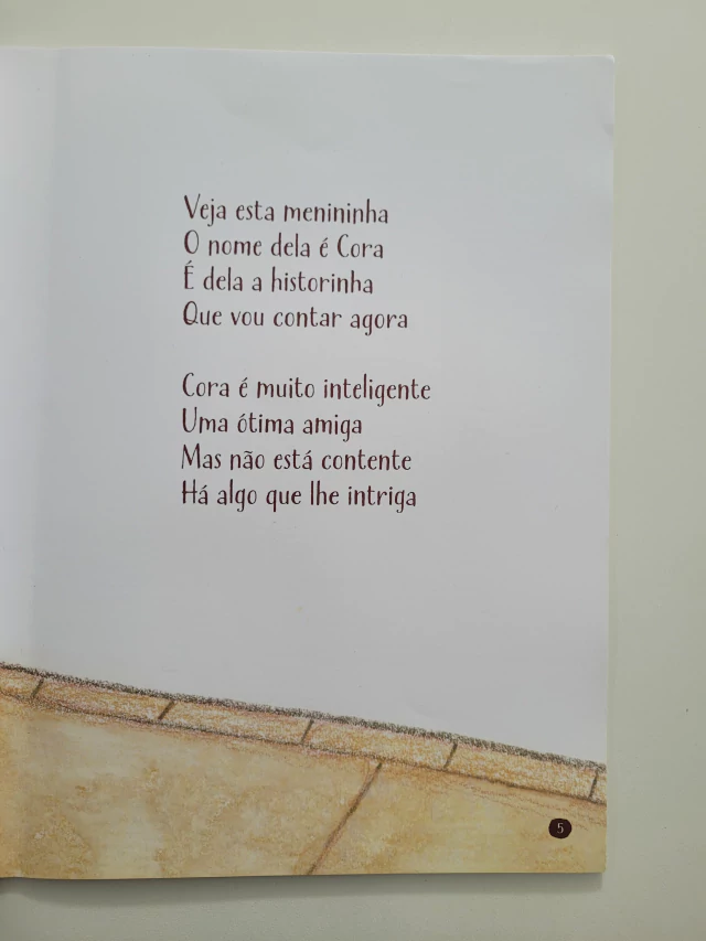 Este livro não é sobre princesas, fadas, bruxas, monstros, animais que falam, super-heróis ou lendas do folclore. A história contada aqui não se passa num reino muito distante e não aconteceu há séculos. Cora é uma criança como voce e vive no mundo real como todos nós. Ela vai pra escola, tem amigos, família, e adora brincar. Mas Cora não está contente. Na verdade, está intrigada com o que sua amiga Miriam disse: "Melhor voce usar uma fita na cabeça". Vamos descobrir, afinal, qual é o fio desta história?