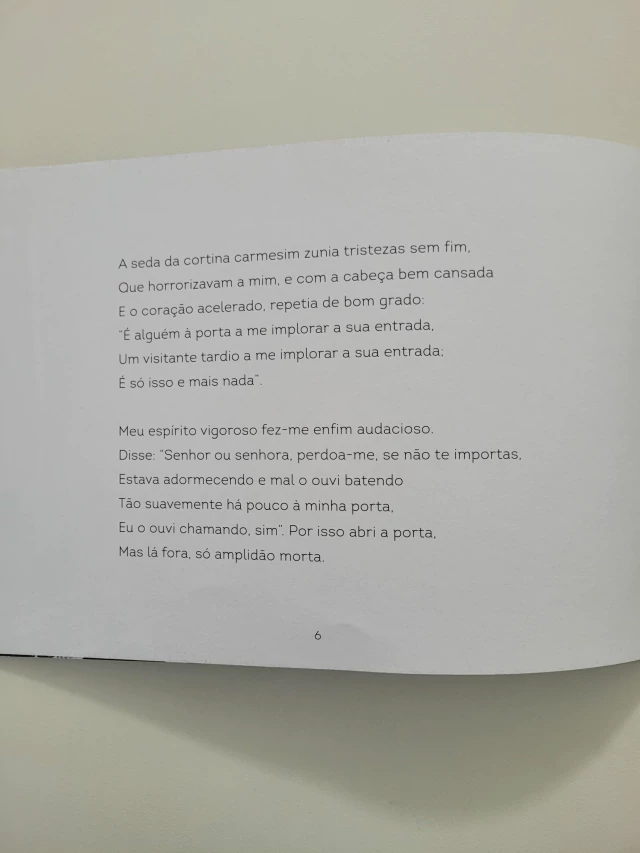 Desta vez, porém, Dirce Waltrick do Amarante, ficcionista e especialista em literatura infantojuvenil, fez uma versão diferente, a partir do original em inglês, destinada às crianças e utilizando uma linguagem acessível a esse público, sem abrir mão, no entanto, do mistério e da ambiguidade que caraterizam o poema em inglês.