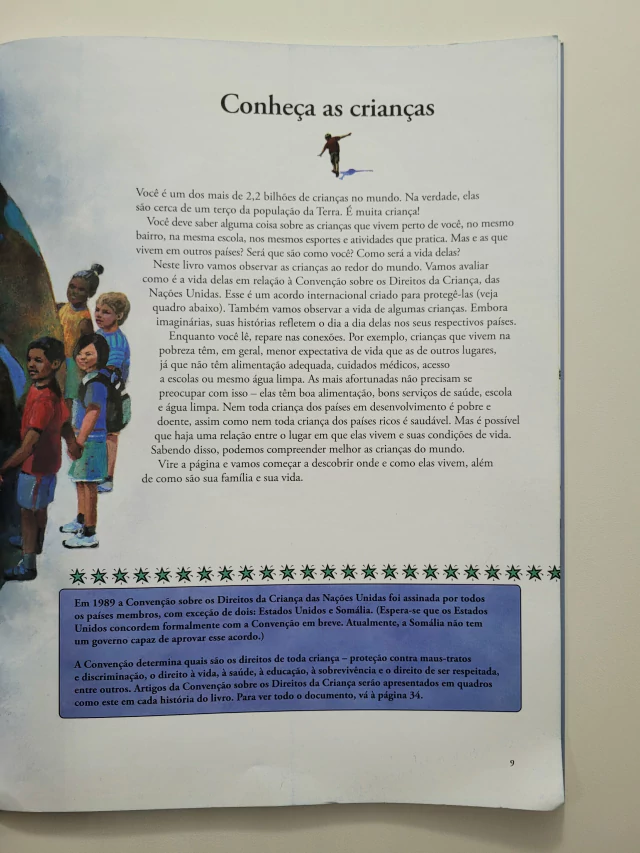 O Direito de Ser Criança mostra aos jovens leitores que as crianças são, essencialmente, iguais e têm as mesmas necessidades, não importando onde moram. O livro também destaca as diferentes realidades da vida na infância. Com sugestões de atividades e discussões, estimula os jovens e suas famílias a trabalhar para que todas as crianças do mundo tenham as mesmas oportunidades de se desenvolver.
