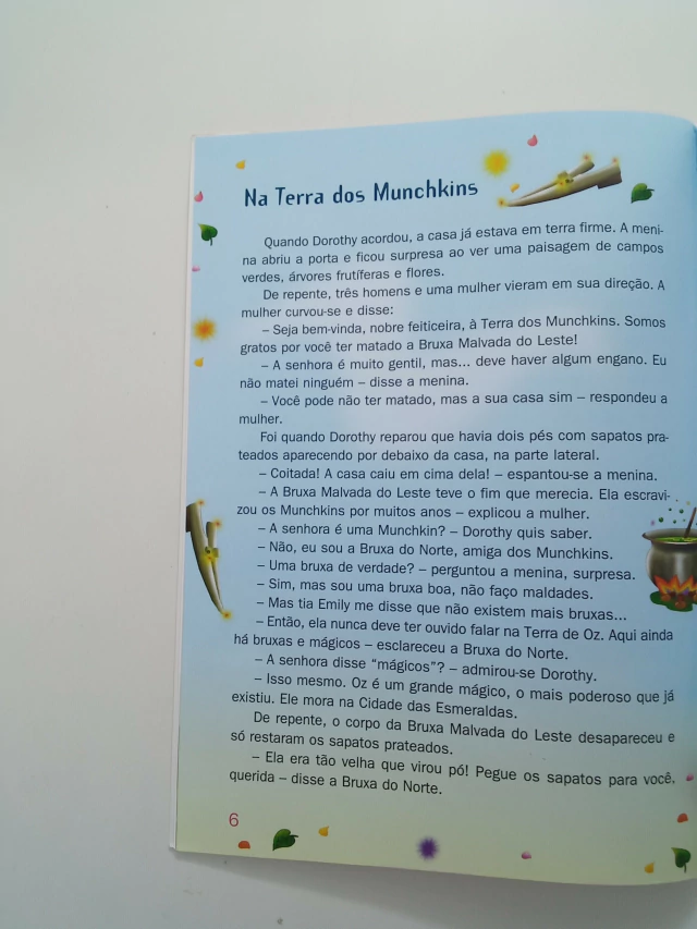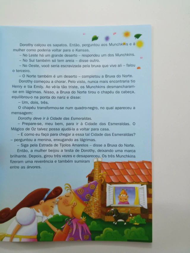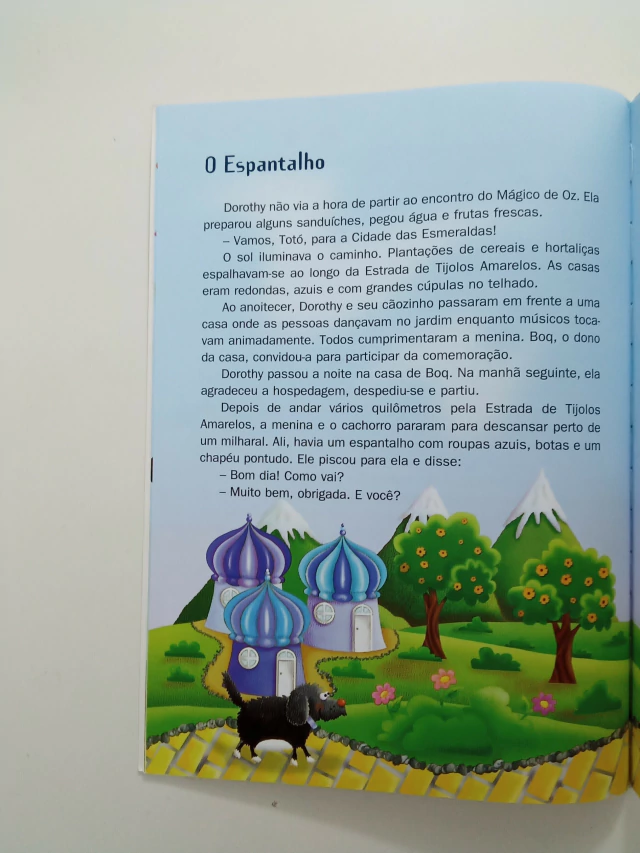 Um ciclone repentino levou Dorothy e seu cachorro Totó para uma terra desconhecida e misteriosa. Lá a menina conheceu o Espantalho, o Homem de Lata e o Leão Covarde, e com eles viveu grandes aventuras, no meio de uma porção de seres fantásticos. Mas tudo o que Dorothy queria era voltar para casa. E, junto com seus novos amigos, seguiu pela Estrada de Tijolos Amarelos, rumo à Cidade das Esmeraldas, para falar com o Grande Mágico de Oz.