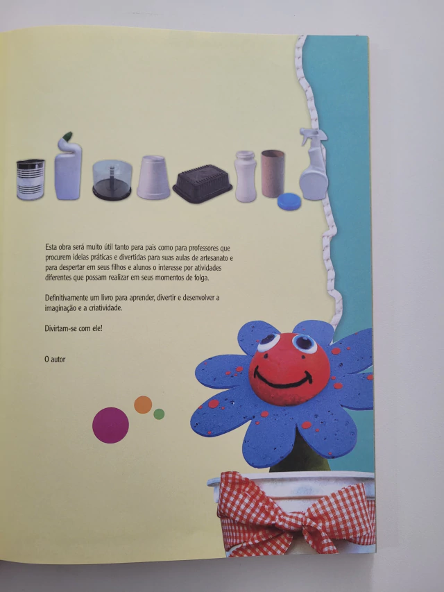 Aprenda a construir, passo a passo, brinqueods e divertidos objetos! Leve para casa, ou para a sala de aula, essas ideias singulares e oportunas para o aproveitamento de materiais recicláveis como papelão, plástico e latas. Além de ensinar como organizar atividades que ajudem na preservação da natureza, este lviro colabora para a formação de crianças conscientes e no desenvolvimento do potencial artístico de todos os envolvidos! Prepare tudo e mãos á obra!