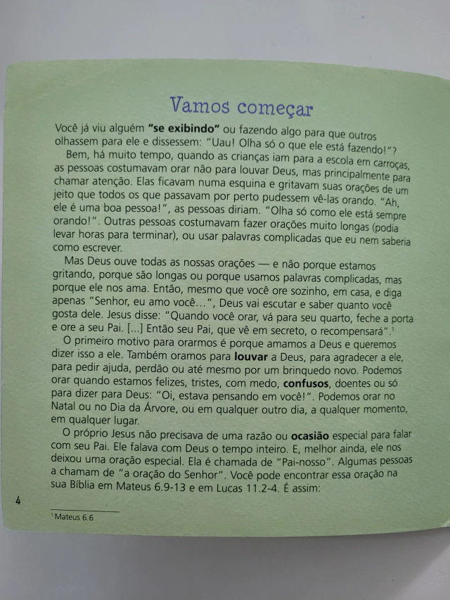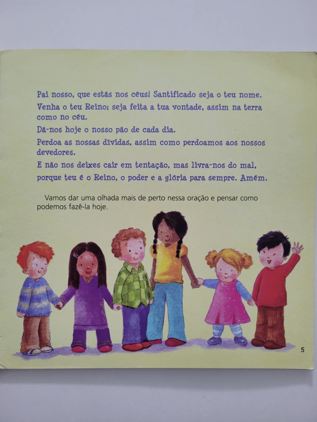 O Pai-nosso é a oração mais conhecida dos cristãos. E a oração é a maneira como falamos com Deus. Orando o Pai-nosso, os pequenos aprenderão como conversar com Deus e conhecerão o grande amor e o cuidado dele para conosco. Contada de forma simples, colorida e ilustrada, esta oração ajudará pais, avós, tios e professores a desenvolver, junto com suas crianças, a prática de compartilhar com Deus todos os momentos da vida.