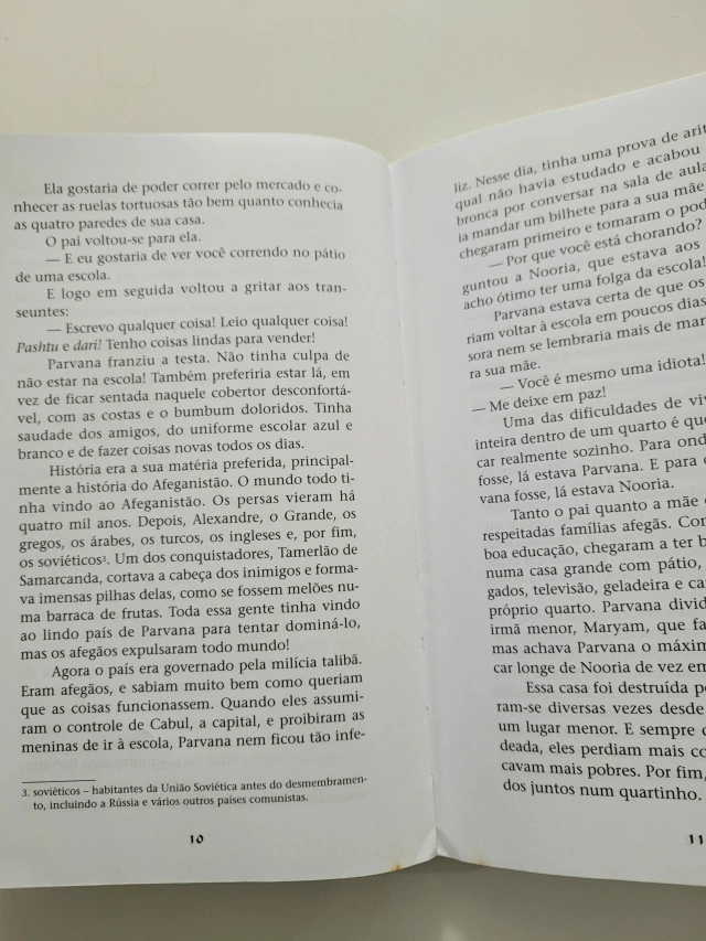 Este livro de ficção da escritora canadense Deborah Ellis, baseada em uma história real, mostra parte da infância de Parvana, uma menina de onze anos que mora em Cabul e trabalha disfarçada de menino para sustentar sua família. O livro retrata, com sensibilidade, o sofrimento das mulheres afegãs durante o regime que o Talebã impôs ao Afeganistão e já foi lançado em diversos países. Além de escritora, Deborah Ellis é ativista política e visitou acampamentos de refugiados afegãos na Rússia e no Paquistão em 1999, quando ouviu o relato sobre a menina que lhe inspirou o livro. Parvana é um nome fictício.