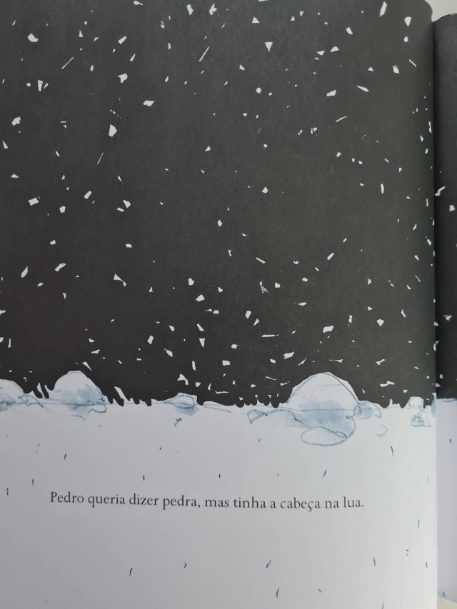 Pedro era um menino que vivia com a cabeça na lua. Desde que descobriu que a Lua era uma pedra grande flutuando no céu, ficou fascinado pelas pedras. E assim, num dia, tropeçou numa tartaruga parecida com uma pedra, que ganhou o nome de Lua. Uma grande amizade nasce entre os dois, compartilhando o crescimento, as perdas e as descobertas do menino, com a poeticidade das obras de Odilon Moraes.
