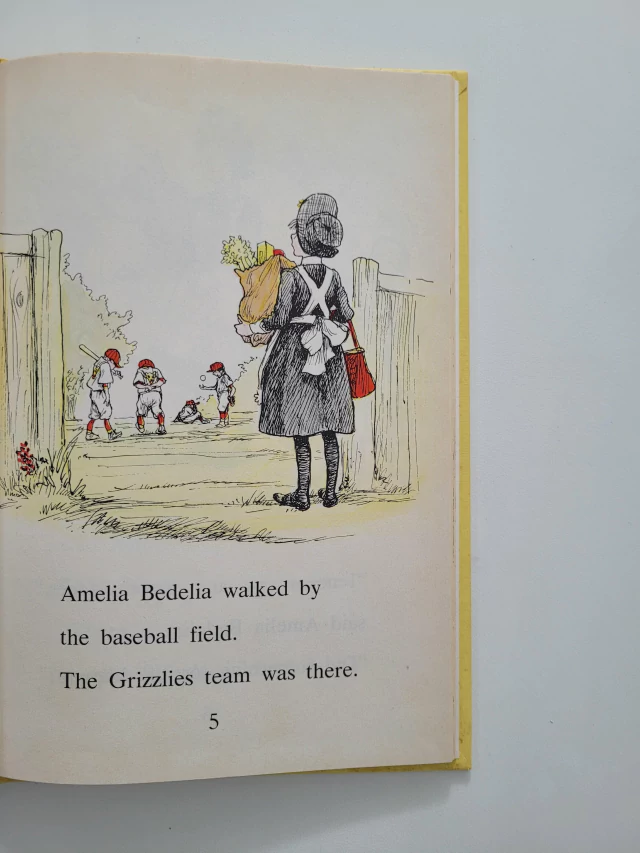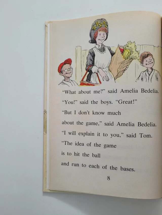 When Amelia Badelia saw the baseball team she asked, "Why the gloomy faces?" Tom said, "Donny has the measles and there's no one to take his place." Then Amelia Bedelia said, "What about me?" But does Amelia Bedelia know how to play baseball?