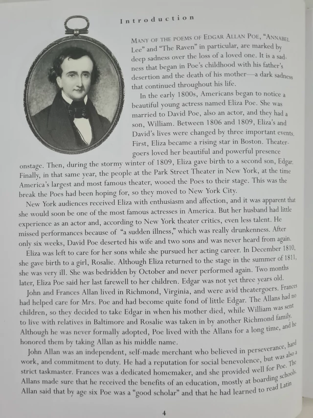 If you think that poetry has to be sweet and nice and romantic, think again. Step into the dark world of Edgar Allan Poe. Well known for his spine-tingling, spooky stories that are even more chilling than todays horror movies, Poe also wrote poems that expressed the shadowy regions of his mind.