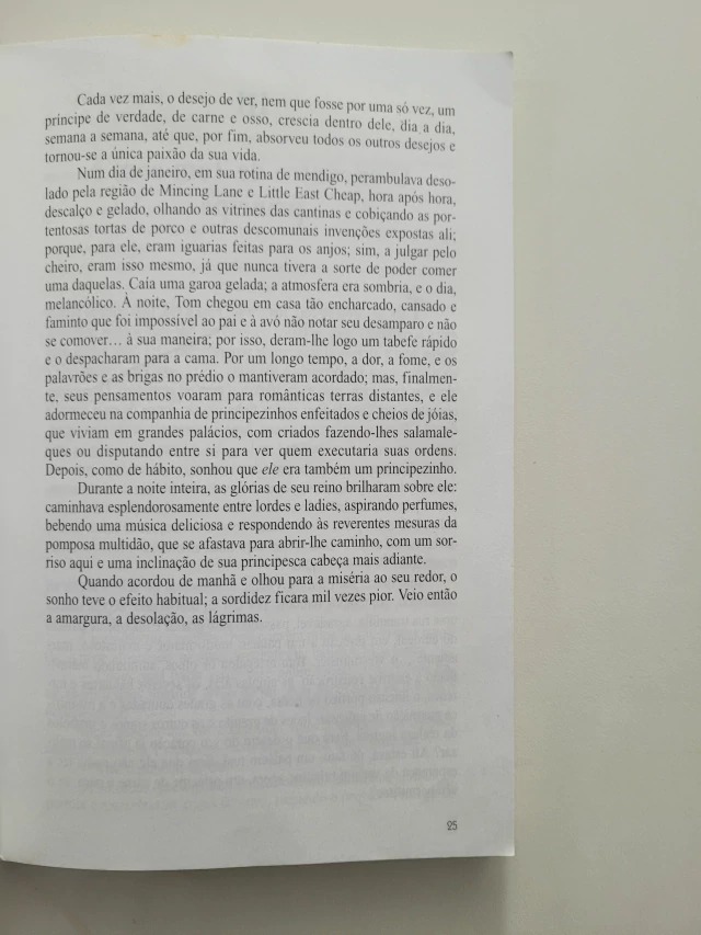 Fisicamente, Edward e Tom são idênticos. Socialmente, ocorre o inverso: o primeiro é o príncipe de Gales, o segundo não passa de um pobre coitado. Mas o que aconteceria se os dois, por obra do acaso, trocassem de papel? Uma série de confusões e muita aventura esperam pelo leitor neste livro clássico, obra originariamente escrita para o público jovem.