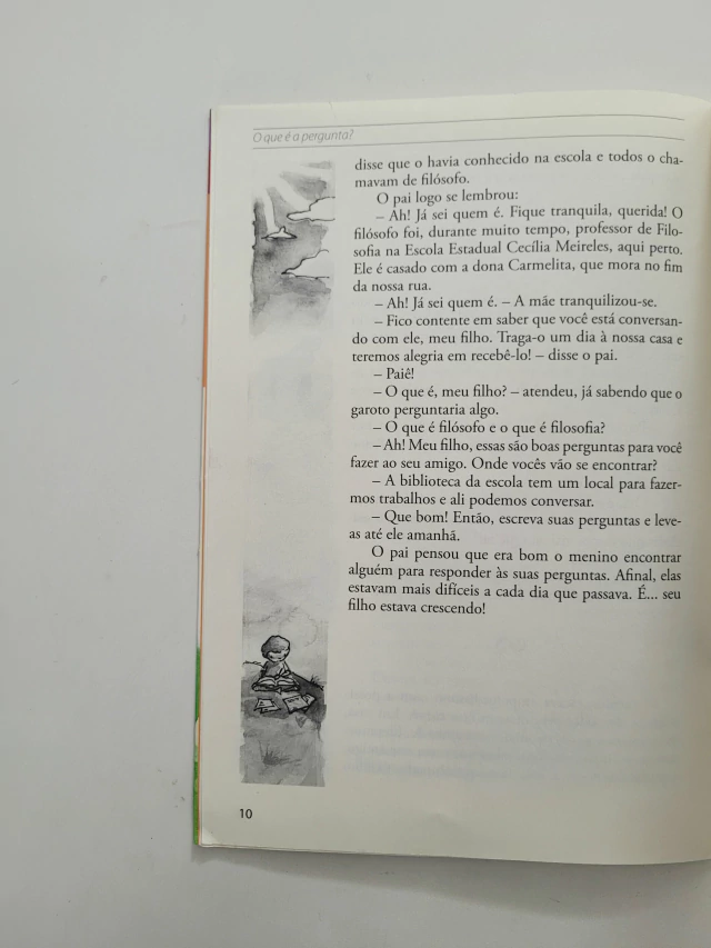 O encontro entre um menino e um filósofo em uma escola será o ponto de partida para uma viagem rumo ao Reino das Indagações, um lugar em que conheceremos muitas personalidades e muitas perguntas feitas ao longo da história da humanidade e da filosofia. No percurso, as peguntas do menino surpreenderão o filósofo, que, aos poucos, as responde e também lhe ensina a elaborar suas próprias respostas. Afinal, todos somos filósofos.