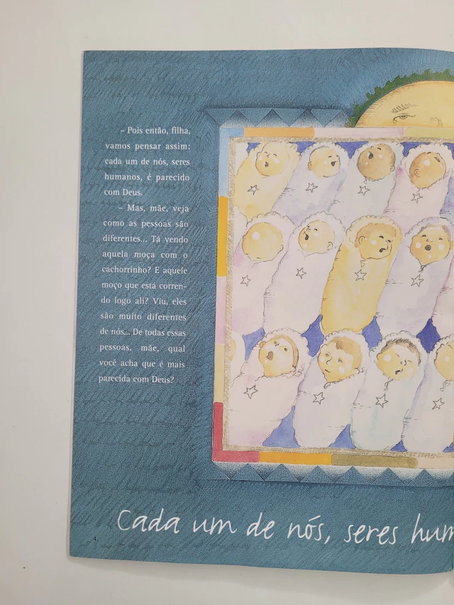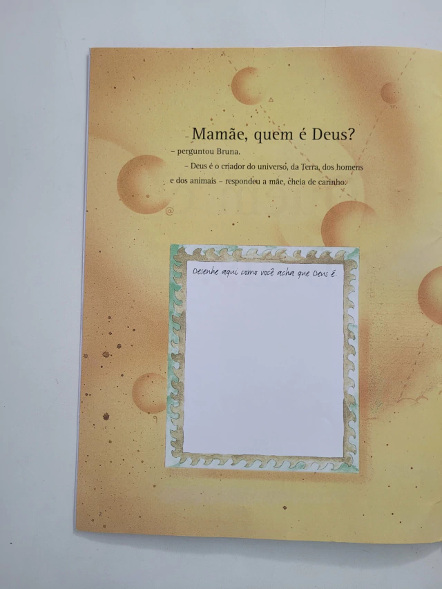Bruna está cheia de dúvidas quem é Deus, com quem Ele se parece, onde Ele vive? A mãe da menina vai explicar, com muito carinho e respeito, que Deus é o criador do Universo, que Ele se parece com todas as pessoas e que Ele vive em tudo o que tem vida. E, sobretudo, que Deus está dentro de cada um de nós, já que todos os seres humanos formam uma única e grande família.