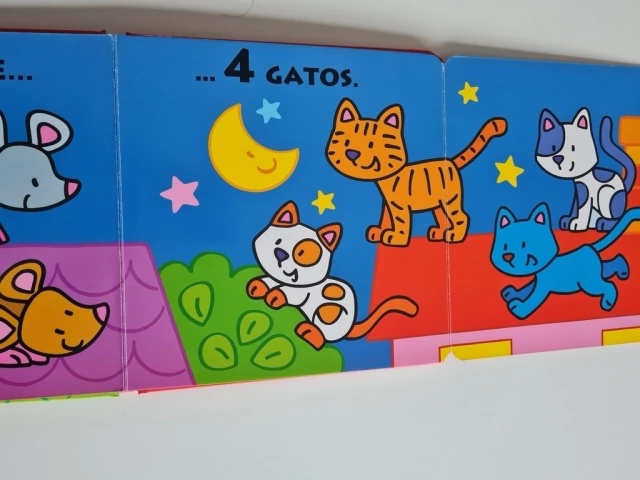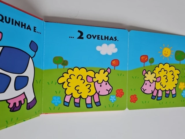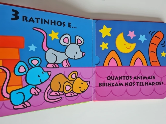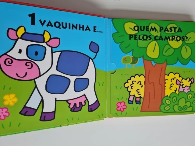 Coleção bem colorida e interativa que traz perguntas e, escondidas atrás de abas, suas respostas. Expõe à criança conceitos como os opostos "em cima - embaixo" e "na frente - detrás", entre outros, e apresenta as cores, utilizando animais e cenários naturais nessa brincadeira