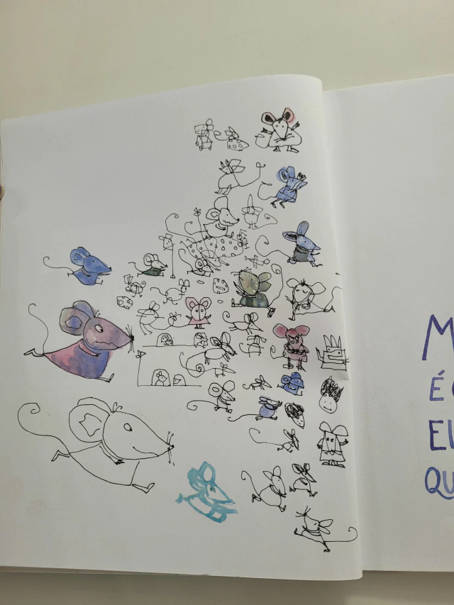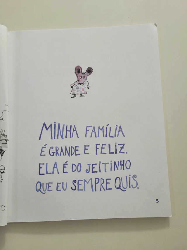 Humberto Guimarães é professor de desenho na escola Guignard, em Belo Horizonte, e como todo ilustrador tem seus cadernos de rabiscos. Uma época começaram a surgir ratinhos, muitos ratinhos, em um de seus cadernos. Quando Ronaldo Simões Coelho, escritor experiente, viu aqueles bichinhos todos, pensou logo em um livro e escreveu versos muito simpáticos para acompanhá-los, como por exemplo: Minha família/ é grande e feliz./ Ela é do jeitinho/ que eu sempre quis. Ou: Nossa alegria/ é fácil de entender:/ passamos noite e dia/ brincando de esconder. E ainda: Um, dois,/ feijão com arroz./ Três, quatro/ um prato para cada rato. O resultado é um livro especial, para crianças pequenas e para todos aqueles que simpatizam com a turma dos roedores.