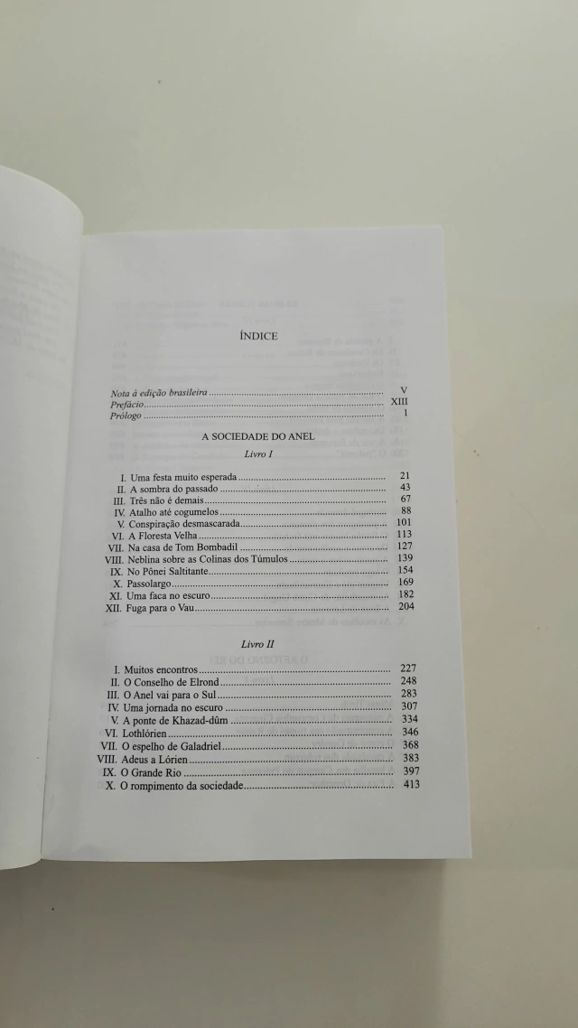 Este livro reúne em um único volume as três partes da trilogia O Senhor dos Anéis, que já vendeu milhões de cópias em todo o mundo e continua encantando pessoas de todas as idades. A Sociedade do Anel, As Duas Torres e O Retorno do Rei, respectivamente primeiro, segundo e terceiro volumes, em dose única para os aficionados por Tolkien, ou simplesmente para os que mergulham pela primeira vez num mundo em que história e fantasia se confundem a cada página, num emaranhado de acontecimentos improváveis, mas absolutamente convincente em seus detalhes.