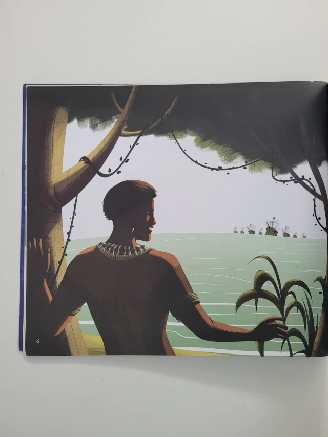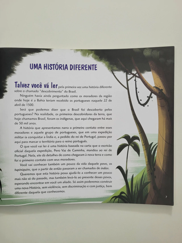 A história deste livro revive, com base na carta que Pero Vaz de Caminha enviou ao rei de Portugal, as emoções do primeiro encontro entre os portugueses o povo tupiniquim, naquela manhã de abril de 1500. Esse encontro, que mudou a história dessa parte do continente chamada posteriormente de Brasil, marcou os habitantes que ali viviam, os indígenas, e deu origem a história do nosso país.