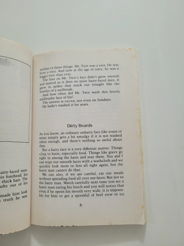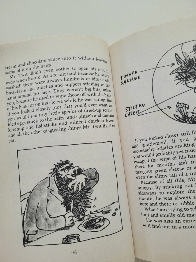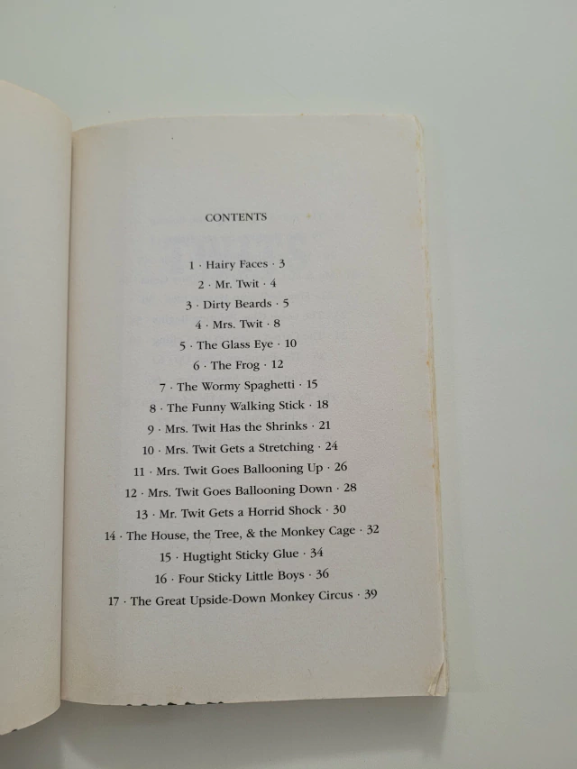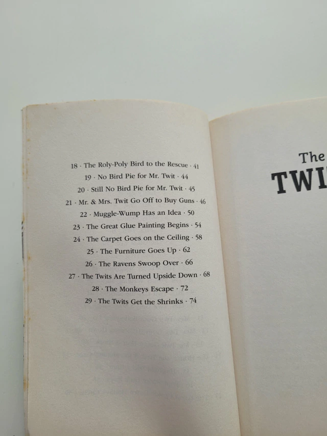 Mr. And mrs. Twit are the smelliest, nastiest, ugliest people in the world. They hate everything-except playing mean jokes on each other, catching innocent birds to put in their bird pies, and making their caged monkeys, the muggle-wumps, stand on their heads all day. But the muggle-wumps have had enough. They don´t just want out, they want revenge.