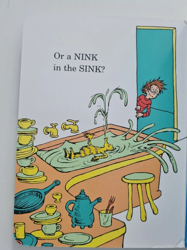 Welcome to Dr. Seuss's book of ridiculous rhymes, and get ready for a wild whirl of words! Keep an eye out for the Zink in the sink and the Bofa on the sofa, and don't forget to say goodnight to the Zillow on your pillow! Everyday objects become the homes for colorful creatures that kids won't be able to get enough of.