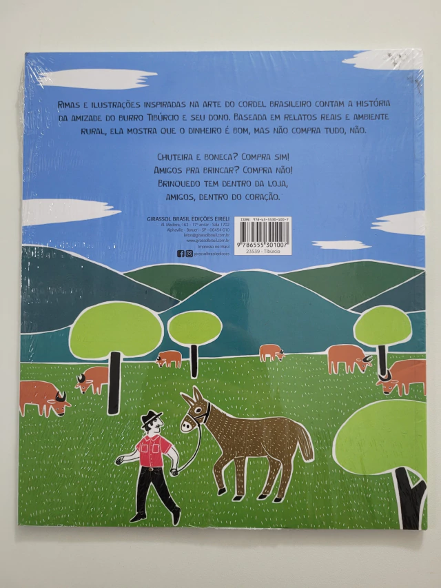 Rimas e ilustrações inspiradas na arte do cordel brasileiro contam a história da amizade do burro tibúrcio e seu dono. Baseada em relatos reais e ambiente rural, ela mostra que o dinheiro é bom, mas não compra tudo, não.