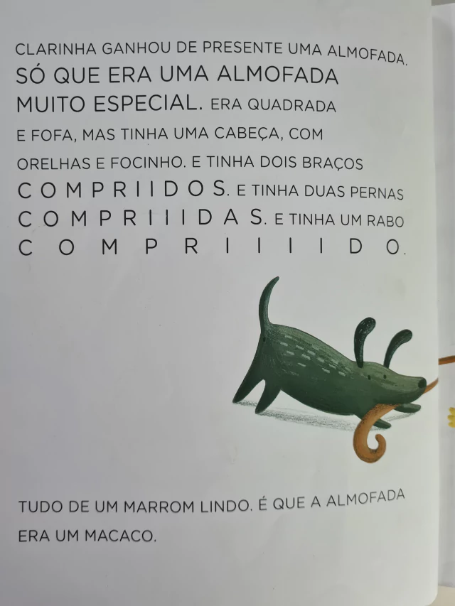 A menina Clarinha ganha de presente uma almofada em forma de macaco. Ela passa a usar a almofada como travesseiro e não a larga mais. Por insistência de uma tia, Clarinha dá um nome ao macaco: Trav. Uma noite ela sonha que subiu até a torre mais alta do mundo, lembrando um passeio que fez com o pai. Clarinha está aprendendo a ler. Aprende o sinal de exclamação e adora reler as frases berrando. Trav também adora. Certo dia, a menina não encontra o Trav. E agora?