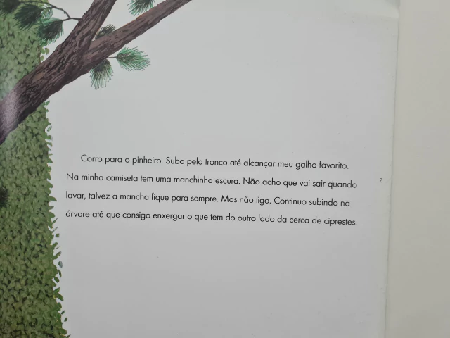 Margarida adora subir no pinheiro do seu jardim. Lá do alto da árvore ela tem uma ampla visão: a bela casa onde mora, sua cachorra com o jardineiro e a vizinhança de moradias simples ao redor, como a de Rosário, sua amiga. Elas costumam se encontrar para brincar debaixo de uma passagem secreta na cerca viva que divide os quintais. Do contato entre realidades tão diferentes surgem conflitos e descobertas.