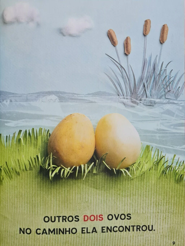 Dona galinha, que boazinha, não gostava de deixar ovinhos abandonados. E ia levando todos para o seu ninho. Um ovo, mais dois ovos, e mais dois... E mais tres... Dona Galinha, que boazinha, vai chocar todos os ovinhos. Xiiii! Será que a Dona galinha não está se esquecendo de nada?