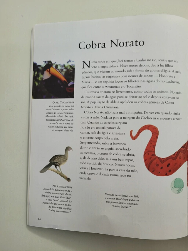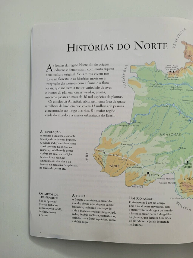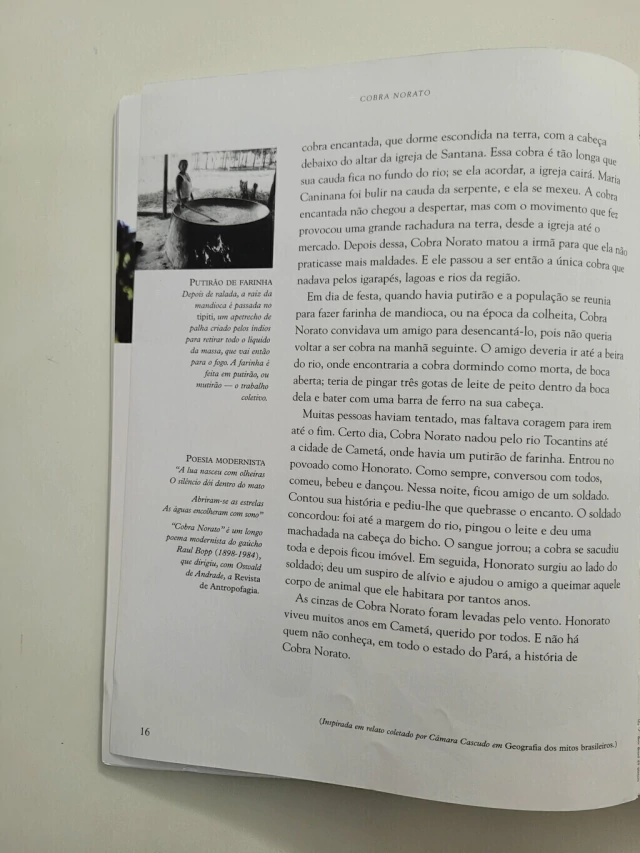 "O folclore, ou a cultura popular, é um dos modos de expressão que melhor refletem o pensamento, o sentimento e a atuação de um povo. Transmitido oralmente de geração a geração, ele ajuda a compor a memória da nação, e é a memória que nos dá consciência e auto-estima." Silvana Salerno inicia dessa maneira a apresentação de Viagem pelo Brasil em 52 histórias, volume que reúne lendas e contos populares tradicionais de nosso país. Antropólogos, etnógrafos, pesquisadores e folcloristas - como Herbert Baldus, Egon Schaden, Cláudio e Orlando Villas-Boas, Darci Ribeiro, João Ribeiro, Basílio de Magalhães, Afonso Arinos, Artur Ramos, Sílvio Romero e Mário de Andrade - serviram de inspiração para essas histórias que recobrem as cinco regiões do Brasil, montando um painel de nossa cultura popular.