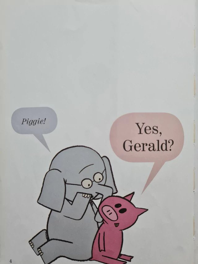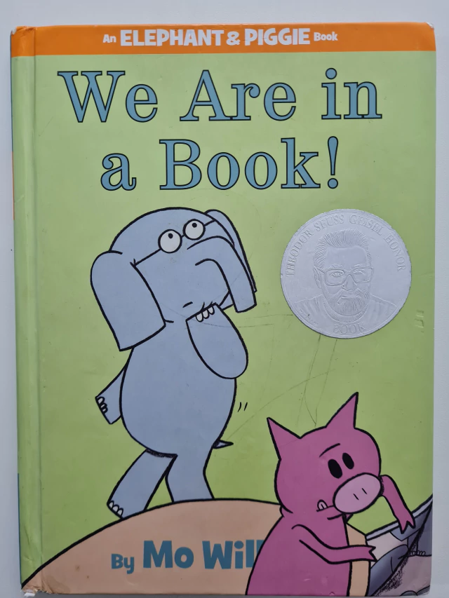 Meet Elephant Gerald and Piggie winners of Theodor Seuss Geisel medals for there is a bird on your head! And are you ready to play outside? And a Geisel Honor for this one, we are in a book!