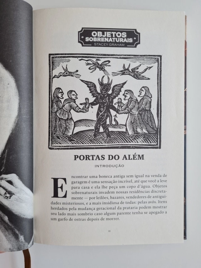 Encontrar uma bela boneca antiga em uma venda de garagem é uma sensação incrível, até você levá-la consigo e ela decidir caminhar pela casa após a meia-noite. Antiquários, feirinhas de rua, heranças de família: os objetos assombrados estão em todos os lugares e invadem nossas vidas de uma maneira discreta, quase acidental. Será mesmo? Objetos Sobrenaturais, mais um lançamento da DarkSide® Books chega através de nossa linha direta com o além. Tão instigante e surpreendente quanto o casal Ed & Lorraine Warren, a caça-fantasmas Stacey Graham convida você a repensar o uso da prataria de sua avó. Ou a olhar com outros olhos aquela caixinha de joias que sempre parece mudar de lugar. Ao folhear as páginas tenebrosas e ricas em detalhes, os leitores irão conhecer uma seleção variada de itens assombrados e amaldiçoados, desde crânios que gritam até bonecas demoníacas ? e entender como eles afetam as vidas de seus respectivos donos. Com uma prosa divertida e objetiva, Stacey Graham traz respostas para diversas perguntas, dá conselhos e discute teorias sobre os tipos de fantasma que existem. Você já se perguntou por que nos sentimos atraídos por histórias que envolvem objetos assombrados? Ou como um objeto se torna assombrado? Será que um fantasma se espremeu entre as moléculas e ficou incrustado no objeto pelo medo do desapego? Só lendo para descobrir. E, de preferência, mantendo as luzes ou velas acesas. A edição traz em sua capa as peças criadas pela artista plástica Dianne Hoffman, e se tem uma coisa que ela mostra é que nunca se sabe o que pode se estar escondido na escuridão. Ou na prateleira do seu quarto. Depois de mostrar como a realidade pode ser ainda mais assustadora que a ficção com títulos como Ed & Lorraine: Demonologistas, 1977: Enfield e Exorcismo, a editora mais sombria do Brasil preparou uma edição à prova de entidades sobrenaturais. Objetos Sobrenaturais é mais um livro da Coleção Sobrenatural que chega para deixar as estantes dos leitores possuídos um pouco mais assustadoras ? quer você acredite no outro lado ou não.