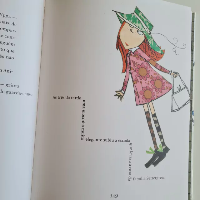 Campeão de vendas no Brasil e no mundo, o livro que conta as peripécias de Píppi Meialonga ganha uma nova edição. Em capa dura, formato grande e todo ilustrado - pela criadora dos personagens do desenho animado Charlie e Lola -, o volume é caprichado nos menores detalhes. A personagem surgiu em 1944, quando a jornalista sueca Astrid Lindgren quebrou o tornozelo e decidiu aproveitar o período de repouso forçado escrevendo um livro para dar de presente à sua filha, que faria dez anos. Pippilotta Comilança Veneziana Bala-de-Goma Filhefraim Meialonga, ou simplesmente Píppi, é uma menina de nove anos incrivelmente forte. Não tem pai nem mãe e mora sozinha, mas feliz da vida. Seus companheiros são um cavalo e um macaquinho. Ela mesma faz suas roupas e sua comida - biscoitos, panquecas e sanduíches. Destemida e sapeca, lembra a Emília do Sítio do Pica-Pau Amarelo. Píppi tem sempre uma resposta na ponta da língua e demonstra grande confiança em si mesma. Dá uma surra em cinco meninos brigões, engana os policiais que querem levá-la para um lar de crianças, põe dois ladrões a correr e enfrenta um touro a unha. Nada convencional, causa espanto e confusão por onde passa, seja na escola, no circo ou na casa de seus vizinhos. É, enfim, uma menina que realiza sonhos de liberdade e aventura. Absolutamente encantadora.