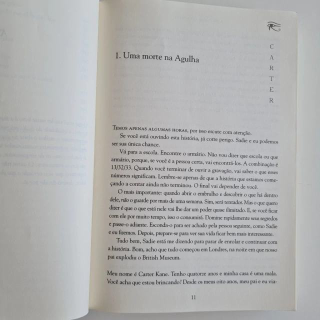 O resultado? Um deus egípcio maligno é libertado, o pai desaparece, e os irmãos descobrem que são descendentes de uma poderosa linhagem de magos. Agora, com o destino do mundo em risco, Carter e Sadie devem aprender a usar magia ancestral, decifrar enigmas dos faraós e sobreviver à perseguição de deuses, monstros e sociedades secretas.
