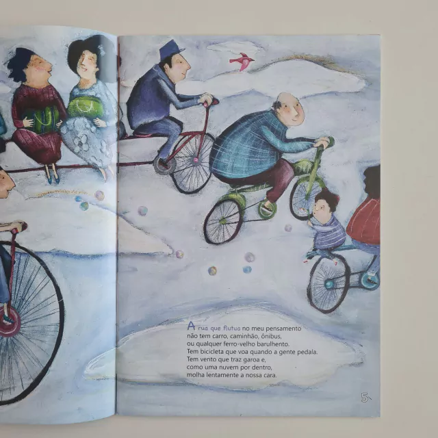 A rua que flutua não tem postes para pendurar fios, colar cartazes ou cachorro fazer pipi. Tem pipas no ar sem linhas cruzando suas cores no céu, emaranhando os raios do sol pra quem lá embaixo quer ver.