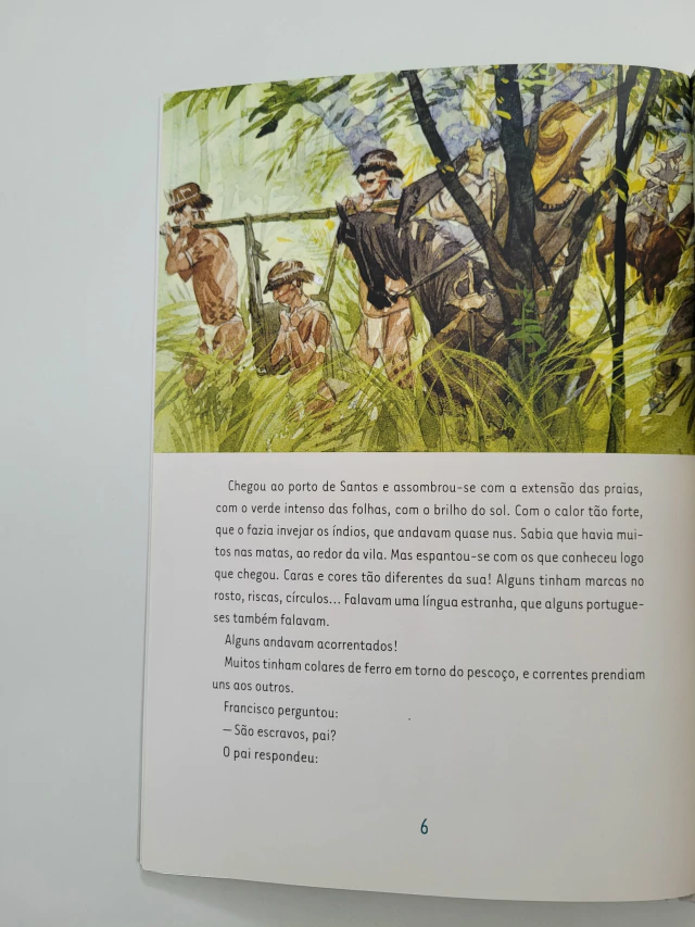 Francisco nasceu em Portugal, mas veio para o Brasil ainda pequeno, no século XVII. Ao chegar, acompanhou de perto as aventuras dos bandeirantes desbravadores que exploravam novos caminhos pelo Brasil, mas que também se tornavam impiedosos caçador es de índios para serem escravizados. O contato com essa nova cultura e a realidade da Colônia fazem com que a solidariedade e a luta pela liberdade passem a estar cada vez mais presentes na vida do menino.