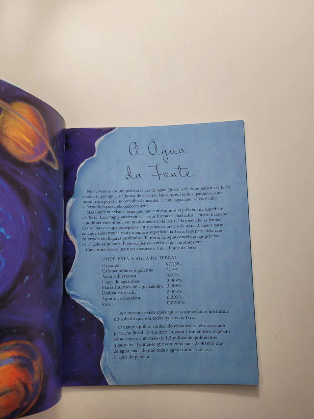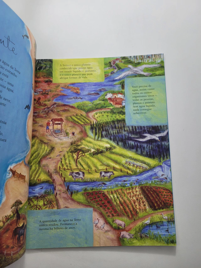 Todos os seres vivos dependem dessa única fonte. A vida seria impossível sem ela. Mas a água dessa fonte está ameaçada pela população crescente e suas necessidades cada vez maiores. O que podemos fazer para protegê-la? Uma Fonte responde a essa pergunta enquanto conta a história admirável da água na Terra. É um livro oportuno e lindamente ilustrado. Sua mensagem mostra como cada um de nós tem o poder de conservar e proteger nossa fonte global.